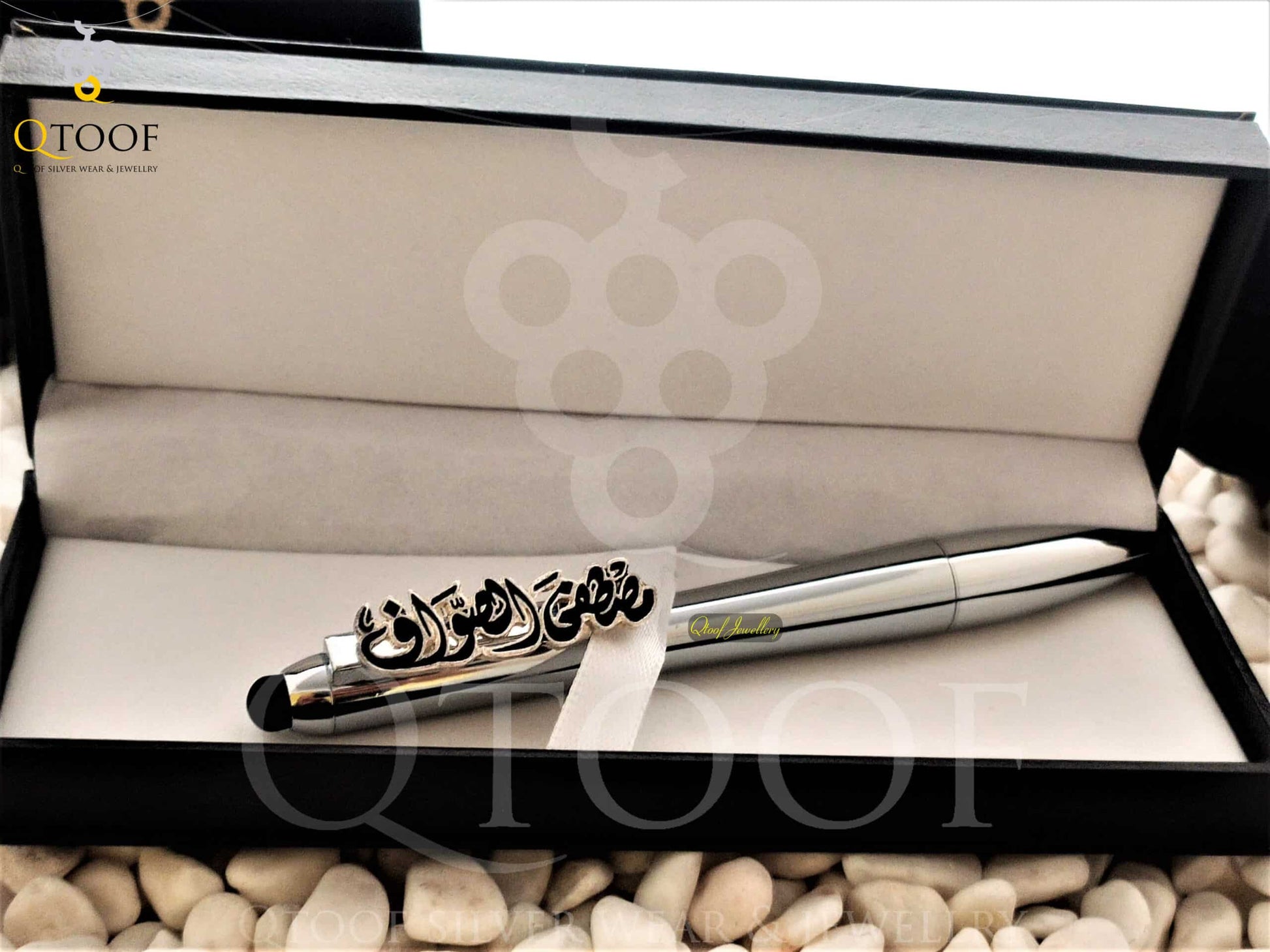 قلم ستانلس سيلفر+علبة قطيفة هدية
